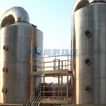 喷淋塔是塔器中出现最早的气液传质设备之一,结构简单,塔内设若干喷嘴,VOCs等废气由下部进入,液体由上部喷入,塔的上部设有除雾器。目前在VOCs等废气治理中,对空塔的应用研究非常多,出现了许多新的结构形式。喷淋塔在VOCs处理中不仅可以用作VOCs的吸收,它还常常在吸附和燃烧时用作对废气的预处理、降温及如RTO系统后的末端喷淋治理。